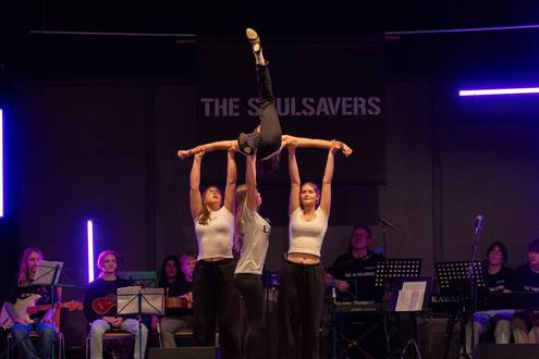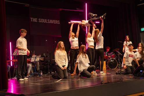 „Wir sind die SoulSavers des aktuellen Jahrgangs und heißen Sie herzlich willkommen. Wir haben alles an diesem Gottesdienst selbst vorbereitet: Texte, Gebete und eine Predigt geschrieben, Tänze und Lieder ausgewählt und eingeübt.“